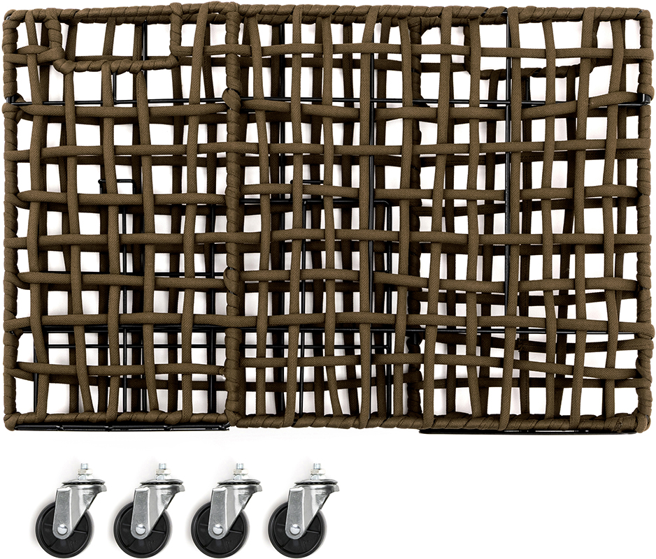 【注意】製品の特性上、紐の結び目やつなぎ目がございます。この製品は濡れたものを入れ放置すると色移りすることがありますので十分にご注意ください。糸が飛び出した際は引っ張らずにハサミで切ってください。直射日光の当たる場所での使用は、製品の劣化を促進させますので避けてご使用ください。【キャスター】床・フローリングの素材や形状により、ガタツキや空回りが発生する場合がございます。差込みが十分でない場合、キャスターの抜けや破損する事があります。
