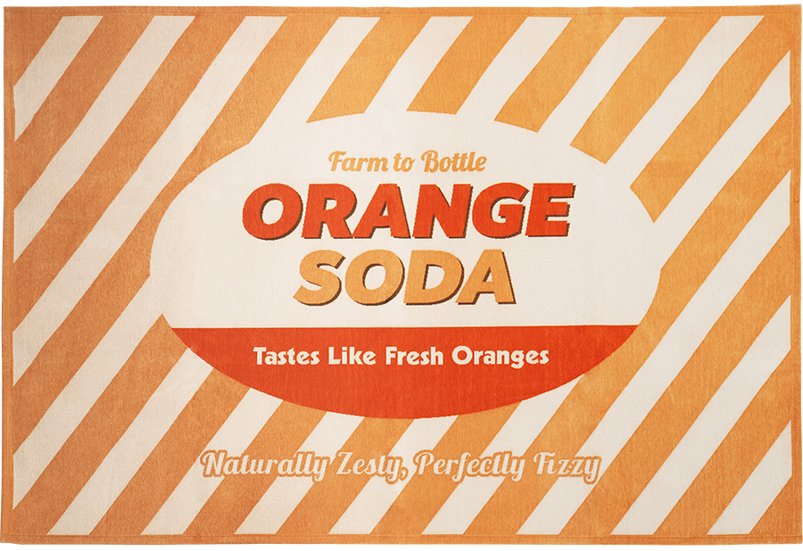 ヴィンテージのドリンクラベルをモチーフにしたラグ。ポップで色鮮やかになりすぎないように抑えた色合いと縞模様の組み合わせがどこか懐かしさを感じるテイストに。サイズは、玄関マットからワンルームの主役まで3サイズ展開。日々の暮らしのなかで、目に入ると思わず嬉しくなるような遊び心のあるデザインラグじはこだわりを詰めたお部屋づくりに欠かせないアイテムです。
