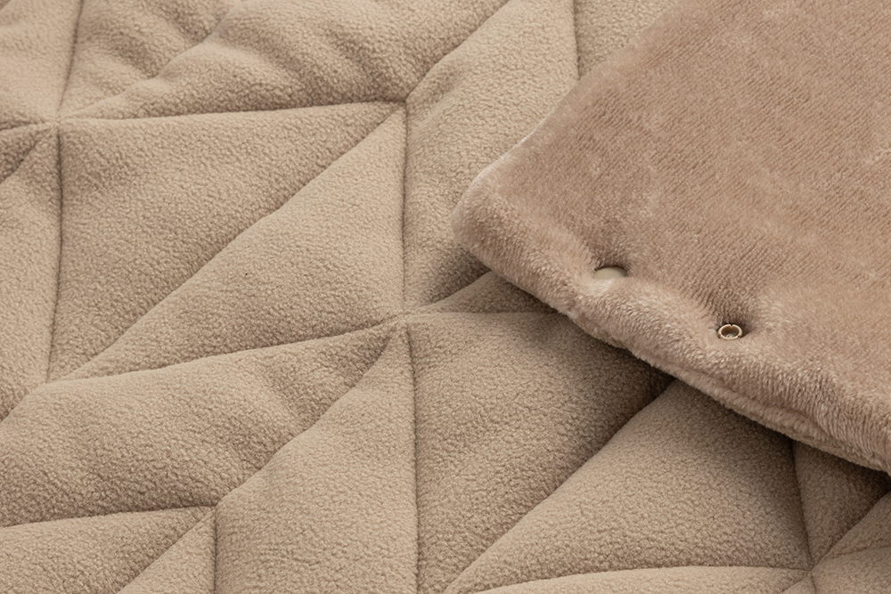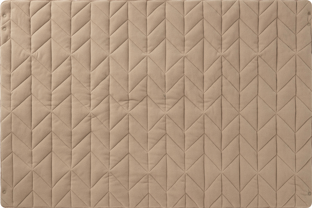 折り紙のパターンにインスパイアされた、羽織れるブランケット。内部は測地を含めた5層構造で、測地の他に吸湿発熱わた・ポリエステルわた・コーティング不織布を重ね、温かさを持続させます。表面は毛玉になりにくにアンチピリング加工を施したフリースを、表面には肌触りが良く保温性のあるフランネル素材を使用し、しっかりとした温かさを確保します。表面にはカイロポケットが2つあるので、より寒い環境下では携帯カイロを併用し、更に温かくお使いいただけます。大判サイズのブランケットなので、男性でも腰にまいてゆったりと使用できます。